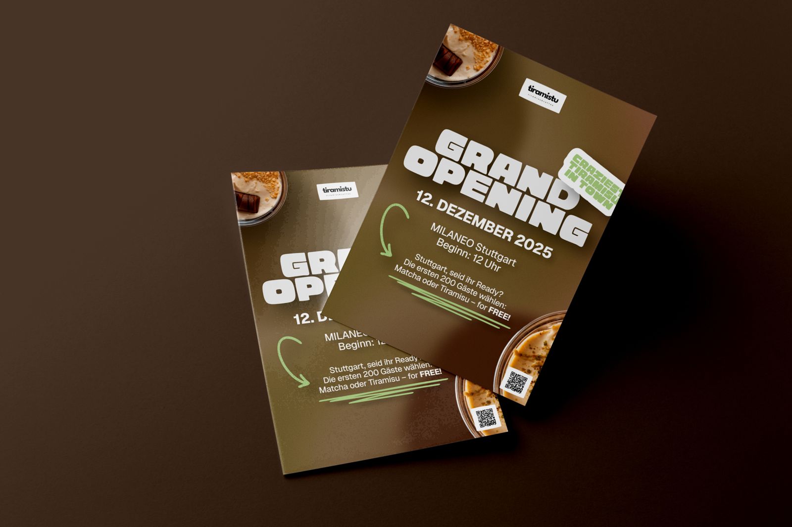 für tiramistu gestaltete rabenschwarz marketing assets sowie print- und folienbeschriftungen. sichtbar im raum, klar in der aussage und so gemacht, dass man nicht wegschaut.